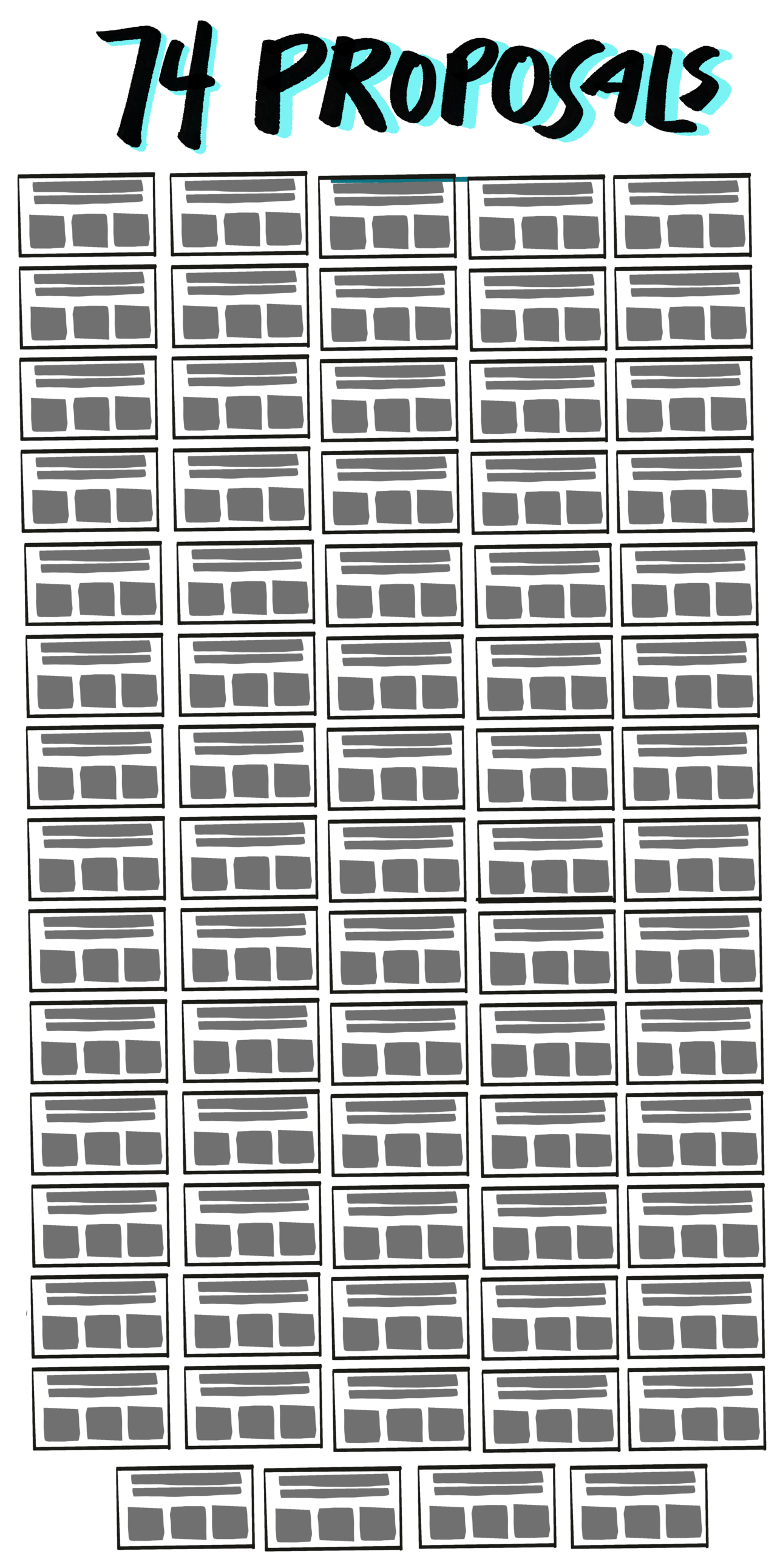 Most of the ideas were similar. In other words, only six of the 71 proposals stood out to me as unique. From Roni: