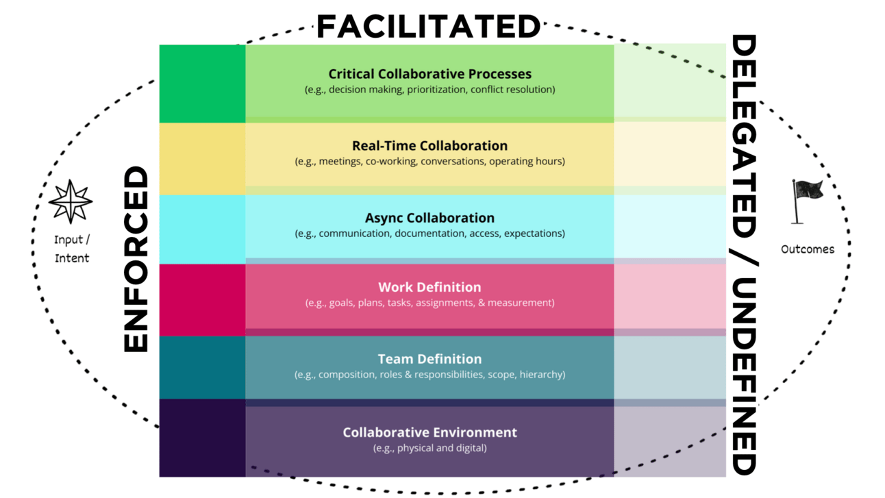 I felt we needed a way to visualize and discuss how we design collaboration in our organizations—something that addresses the messy middle ground between our high-level aspirations and prescriptive methodologies. I’m deeply grateful to Dr. Carrie Goucher, Lauren Green, John Keith, and Dave Mastronardi for their invaluable guidance during the development of this approach, and to the leadership cohort at IAF for allowing me to share it with them before making it public.