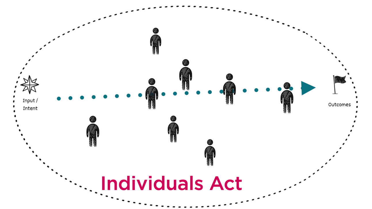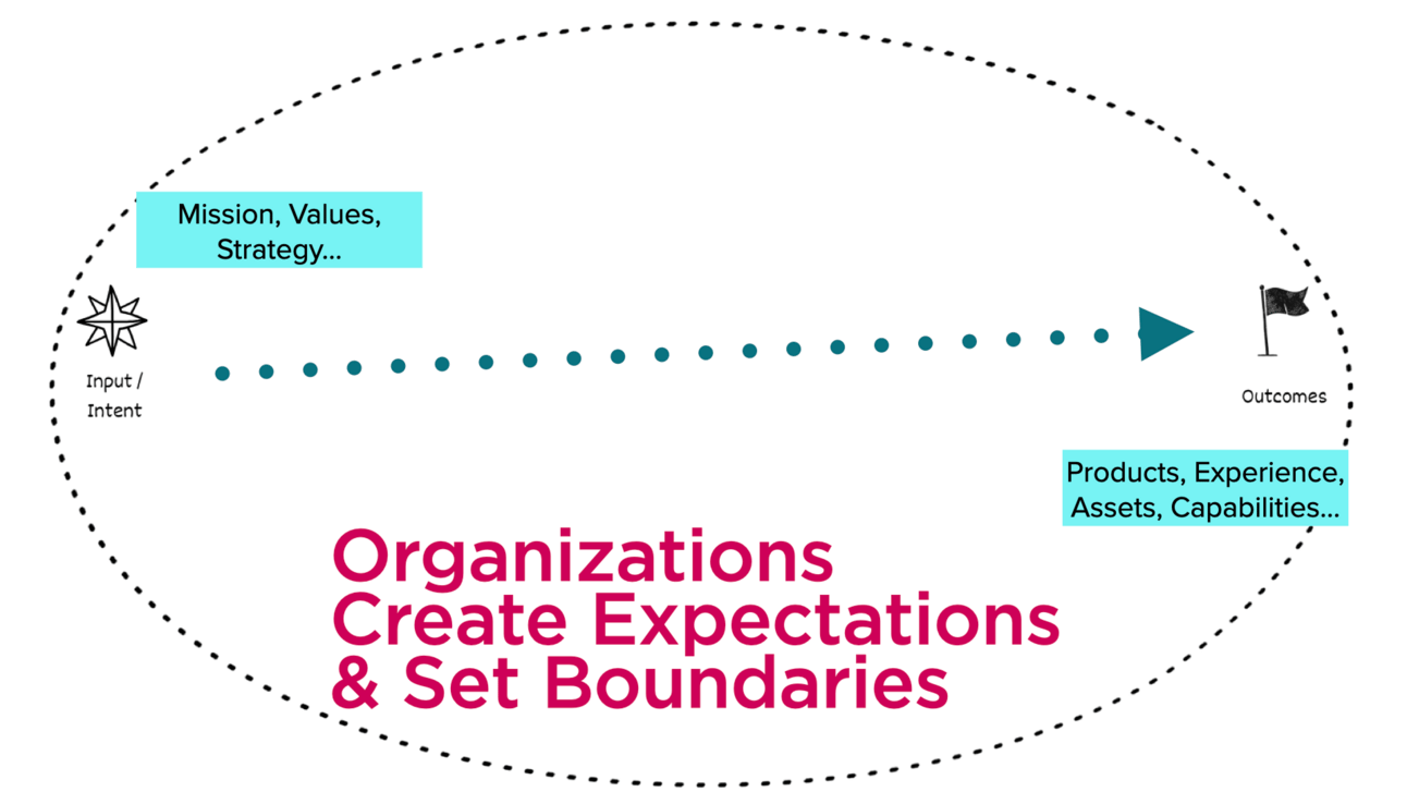 The organization creates these high-level expectations and sets the boundaries. Within those boundaries, the work gets done by individual people.