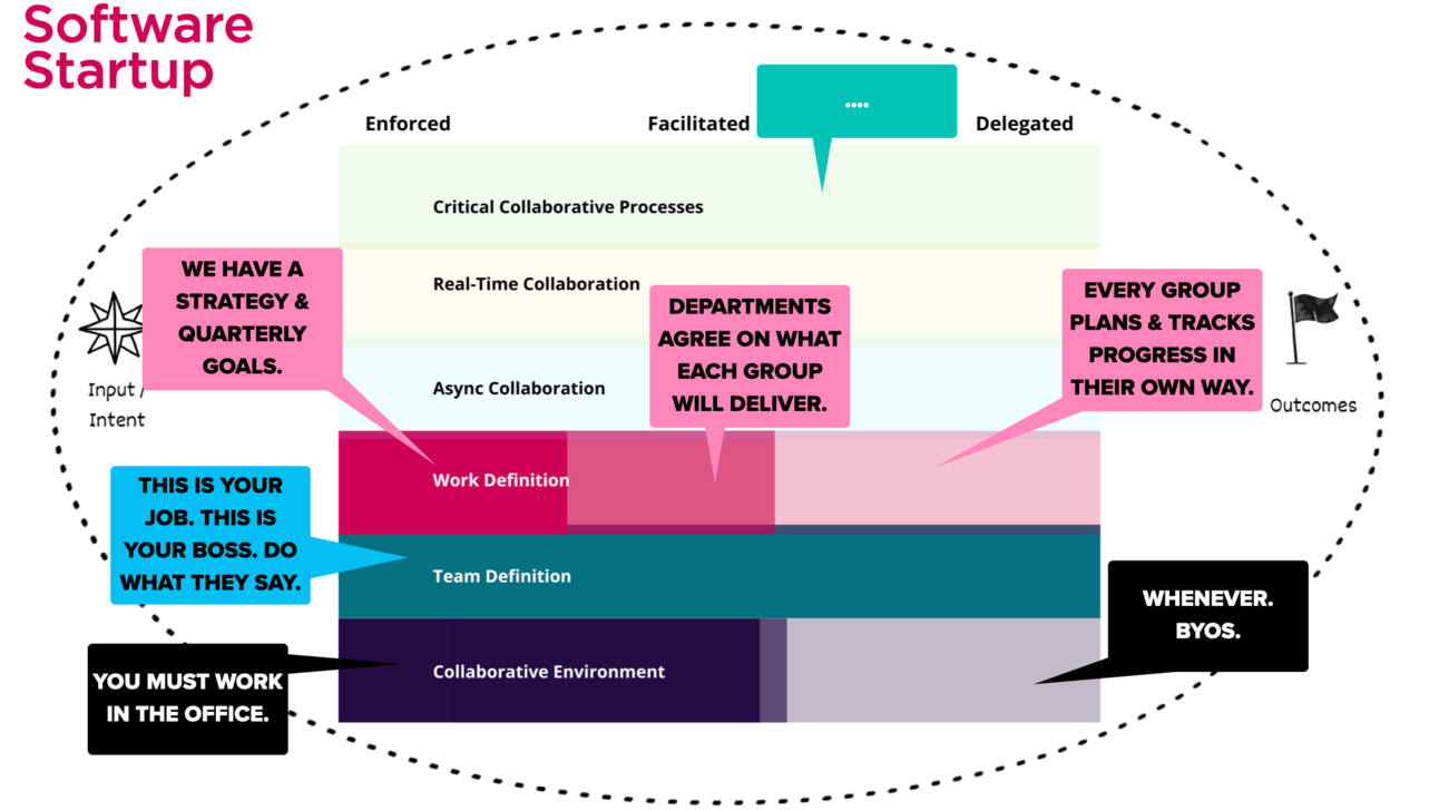 NOTE: These first three levels apply to all kinds of teamwork. Henry Ford and Frederick Taylor were all over-optimizing the design of the physical environment, team definitions, and work definitions. Heck, even my family has to figure this stuff out before we can team up to host a big party. This is well-trodden territory, so it shouldn't be a surprise that most organizations have answers to these questions.