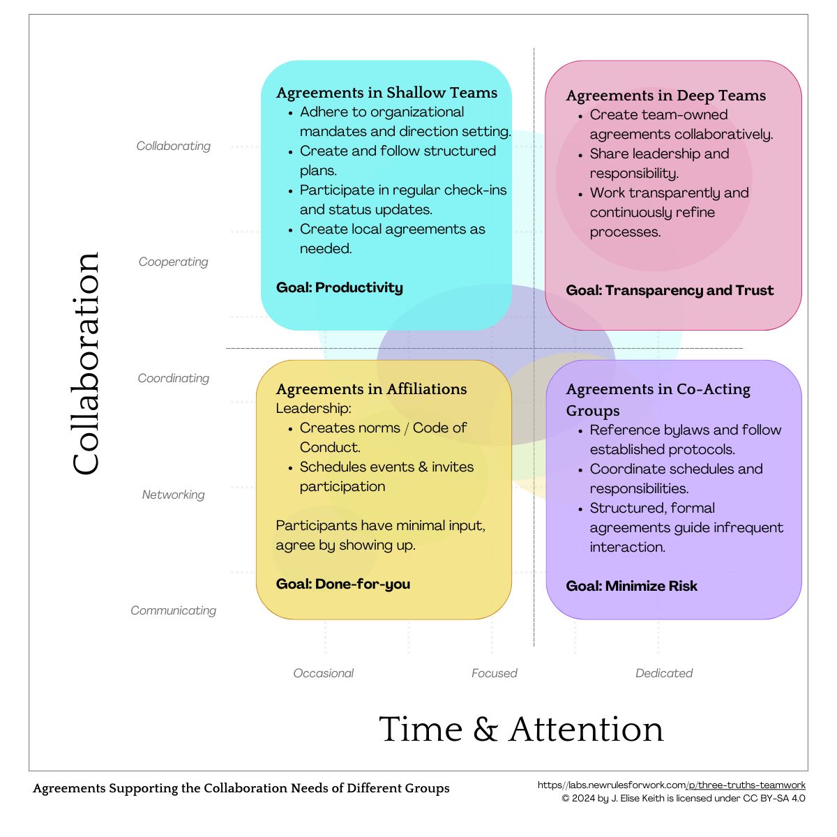 I believe discussing these four questions is the most efficient way for brand-new teams to reach useful agreements about what they're doing and how they'll get it done. These certainly aren't the only questions you might ask, so I've included links to other people's templates in the PDF, too.